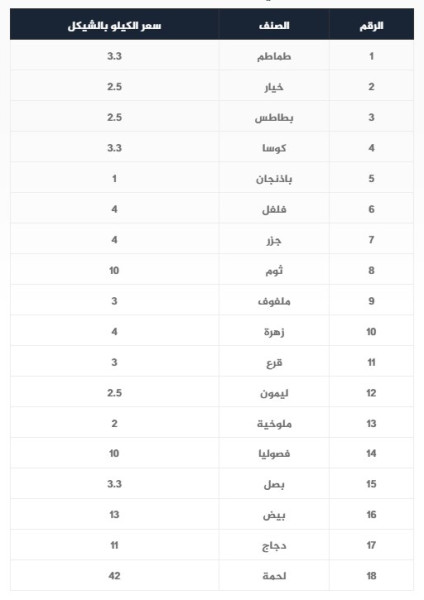 جاءت قائمة أسعار الخضروات والدجاج واللحوم داخل أسواق قطاع غزة، اليوم السبت، على النحو التالي: