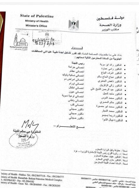 قررت وزيرة الصحة، مي الكيلة، تشكيل لجنة طبية عليا في قطاع غزة.
