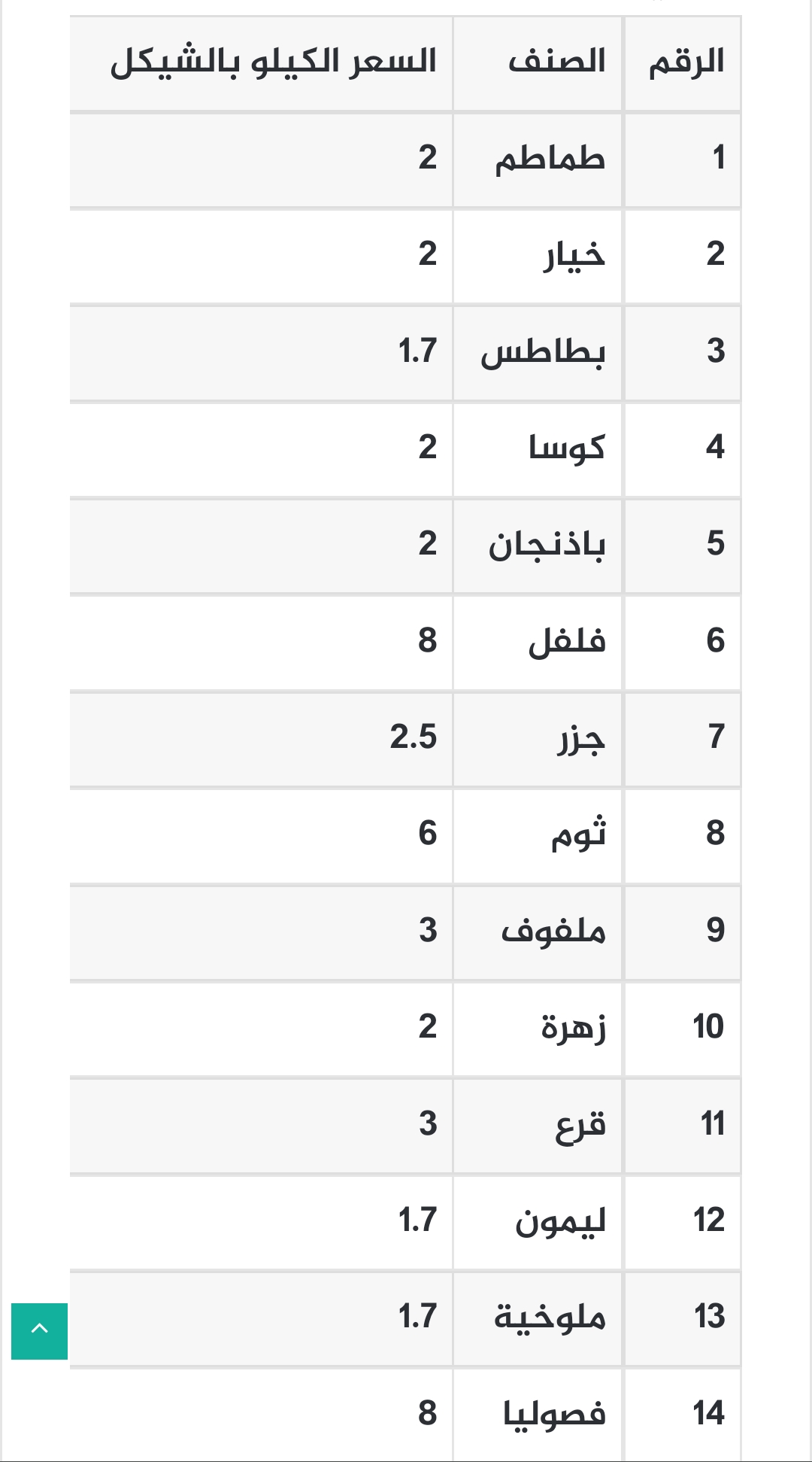 جاءت أسعار الخضروات والدجاج والبيض واللحوم في أسواق غزة،اليوم السبت 15 أبريل 2023،عالنحو الآتي: