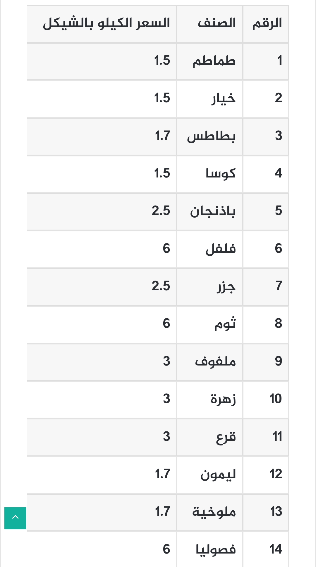 طالع قائمة أسعار الخضروات والدجاج واللحوم في أسواق غزة اليوم