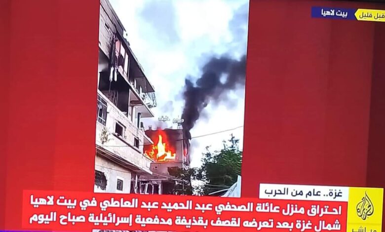 بالفيديو والصور: احتراق منزل الصحفي عبد الحميد عبد العاطي بعد استهدافه بقذيفة