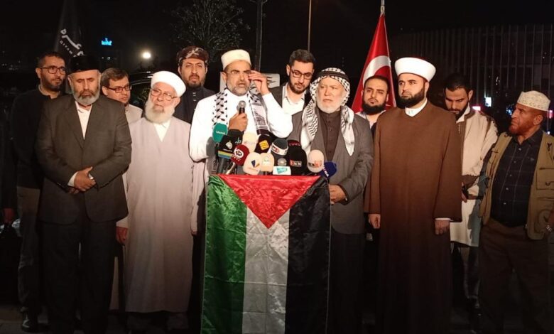 دعت مجموعة من علماء المسلمين، مساء الخميس، الأمة الإسلامية وأحرار العالم إلى تنفيذ إضراب عالمي شامل في السابع من أكتوبر، وذلك بمناسبة مرور عام كامل على العدوان الإسرائيلي على قطاع غزة.