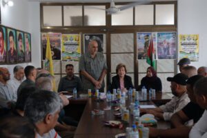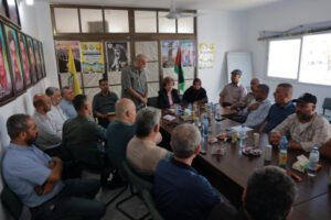 وشارك في اللقاء أعضاء الهيئة القيادية العليا، جمال عبيد، زياد شعث، عبد الحق شحادة، سلمى الخوالدة، ومفوضي العمال والجرحى في الأقاليم الجنوبية، وأمين سر المكتب الحركي المركزي، سراج اللوح، وأعضاء المركزي وأمناء سر الفروع الثمانية،