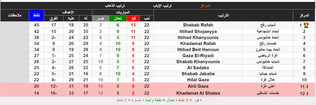 وبهذا التتويج يرفع خدمات رفح رصيده إلى 50 نقطة في المركز الأول، بينما يبقى رصيد اتحاد خان يونس 29 نقطة في المركز الخامس.