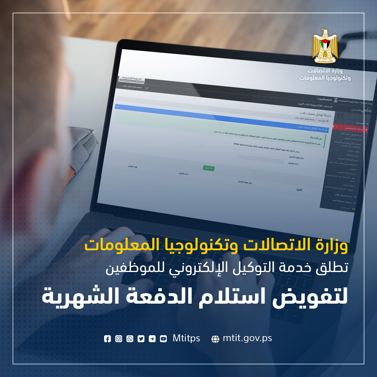 وقالت وزارة الاتصالات في بيان صادر عنها أنها أطلقت خدمة توكيل صرف الدفعة الشهرية وهي خدمة إلكترونية تتيج للموظفين تفويض شخص آخر لاستلام الدفعة الشهرية بكل سهولة وأمان