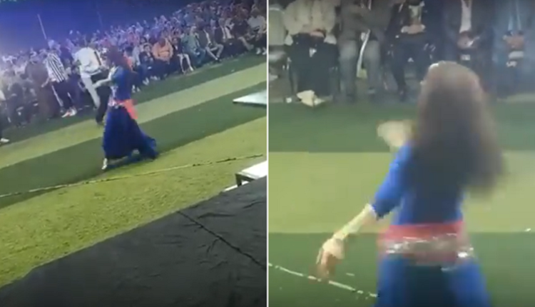 بدت الراقصة في الفيديو المتداول على نطاق واسه مرتدية فستانًا أزرق اللون وتقوم بحركات راقصة وتهز خصرها بينما يشاهدها مجموعة من الطلاب والمسؤولين الجالسين في الملعب.
