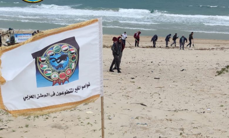 غواصي الخير المتطوعون يشرعون في حملة لإزالة المخلفات على شاطئ بحر خان يونس