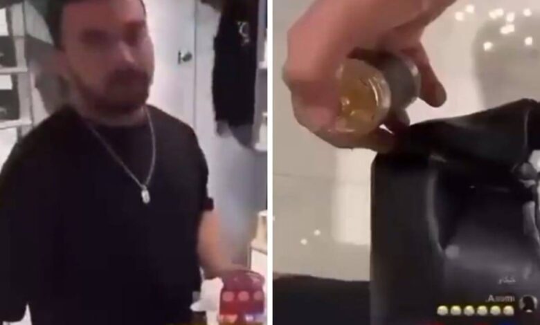 وأظهر الفيديو السائح الإماراتي يصور لايف أثناء تسوقه داخل المحل وقام برش كمية من زجاجة عطر على حقيبته، وأثناء ذلك تحدث معه البائع قائلا: ” هذا كثير”، في إشارة لرش العطر.