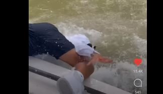فيديو يقطع الأنفاس .. قرش يعض صياداً ويسحبه من القارب!