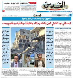 في مقابلة مع صحيفة القدس الصحفي عبد الحميد عبد العاطي : “عندما نواري أحبتنا بأيدينا ولوحدنا”