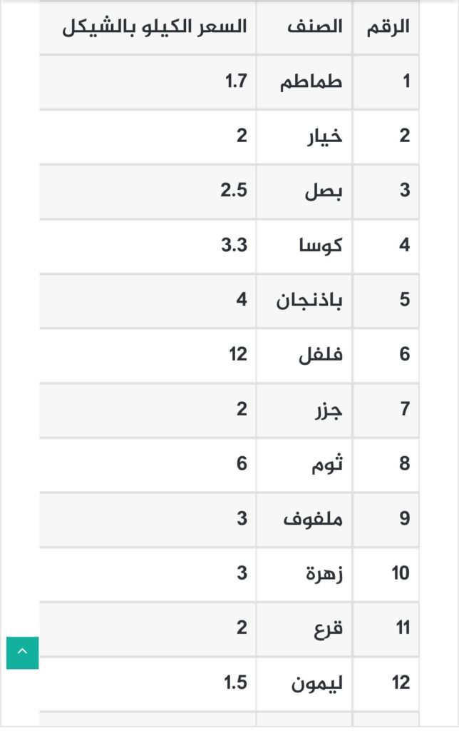 جاءت أسعار الخضروات والدجاج واللحوم في أسواق قطاع غزة،اليوم الجمعة 24 فبراير 2023،عالنحو الآتي: