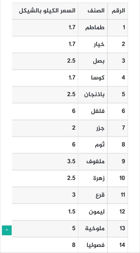جاءت قائمة أسعار الخضروات والدجاج واللحوم في أسواق قطاع غزة،اليوم الثلاثاء 7 مارس 2023،عالنحو الآتي: