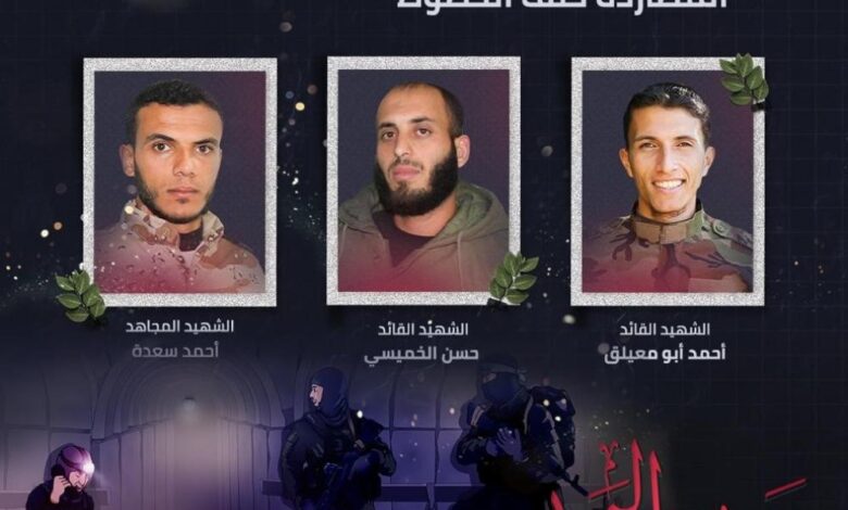 حيث استشهد في العملية أثناء تنفيذها الشهيد أحمد نظمي سعدة، فيما استشهد القائد حسن الخميسي بعد أيام من عودته من العملية أثناء جولات القتال في المعركة، أما الشهيد “أبو جواد” أحمد أبو معيلق فقد أمد الله في عمره لتوافيه المنية بعد ست سنوات من اشتراكه في تنفيذ العملية، فكان خير من حفظ عهدة الشهداء وأخلصَ في ميدان الجهاد.