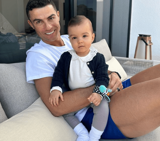 ظهر كريستيانو رونالدو بالصور المتداولة برفقة طفلته الصغيرة في أجواء عائلية، وعلقت حبيبته على الصورة قائلة: “بحبهم”.