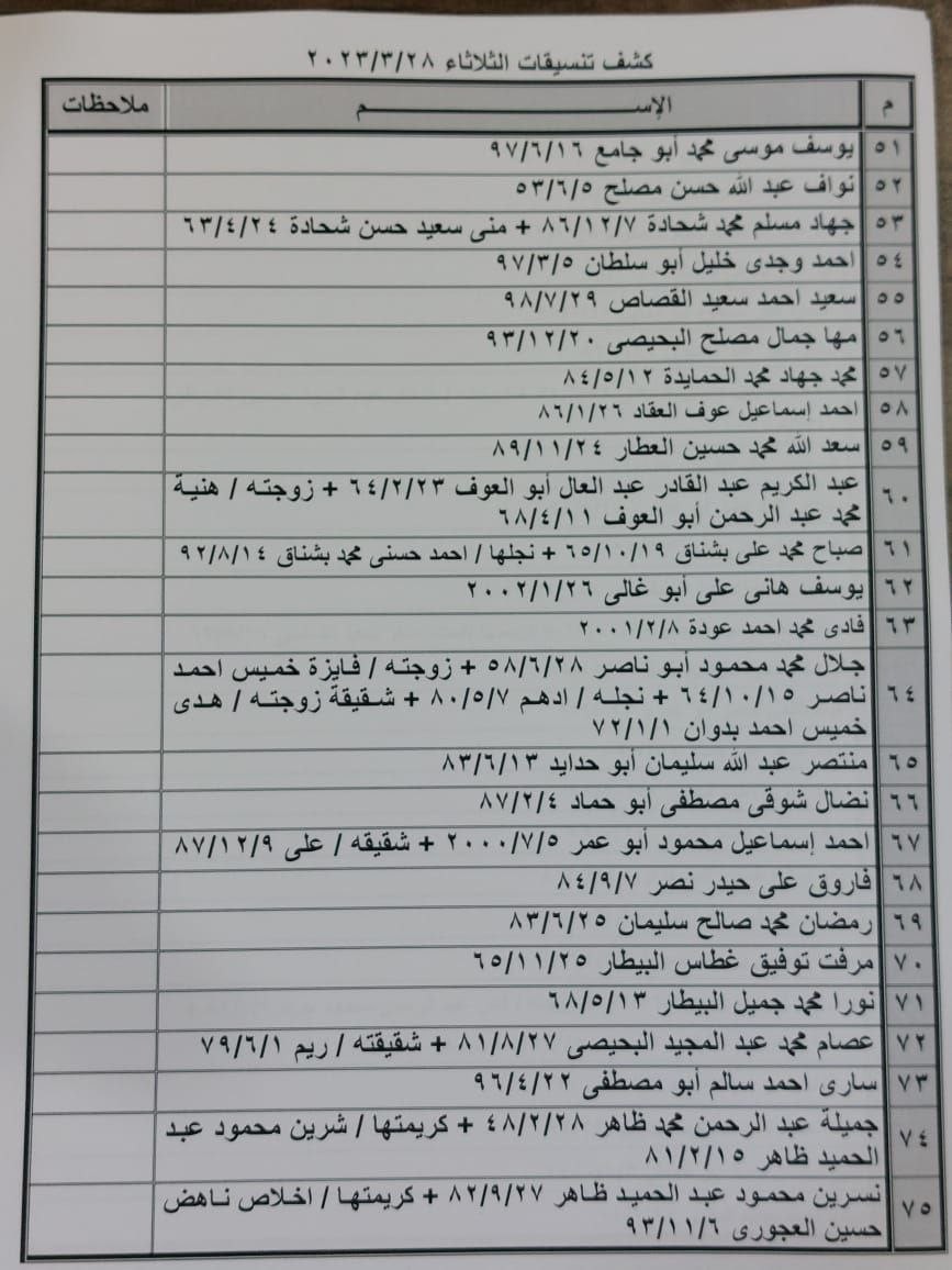 – تعلن الهيئة العامة للمعابر والحدود بوزارة الداخلية والأمن الوطني عن وصول كشف “تنسيقات مصرية” للسفر عبر معبر رفح البري يوم الثلاثاء (28 مارس)، والذين عليهم التواجد س 7:00 صباحاً في الصالة الخارجية للمعبر لتسهيل سفرهم.