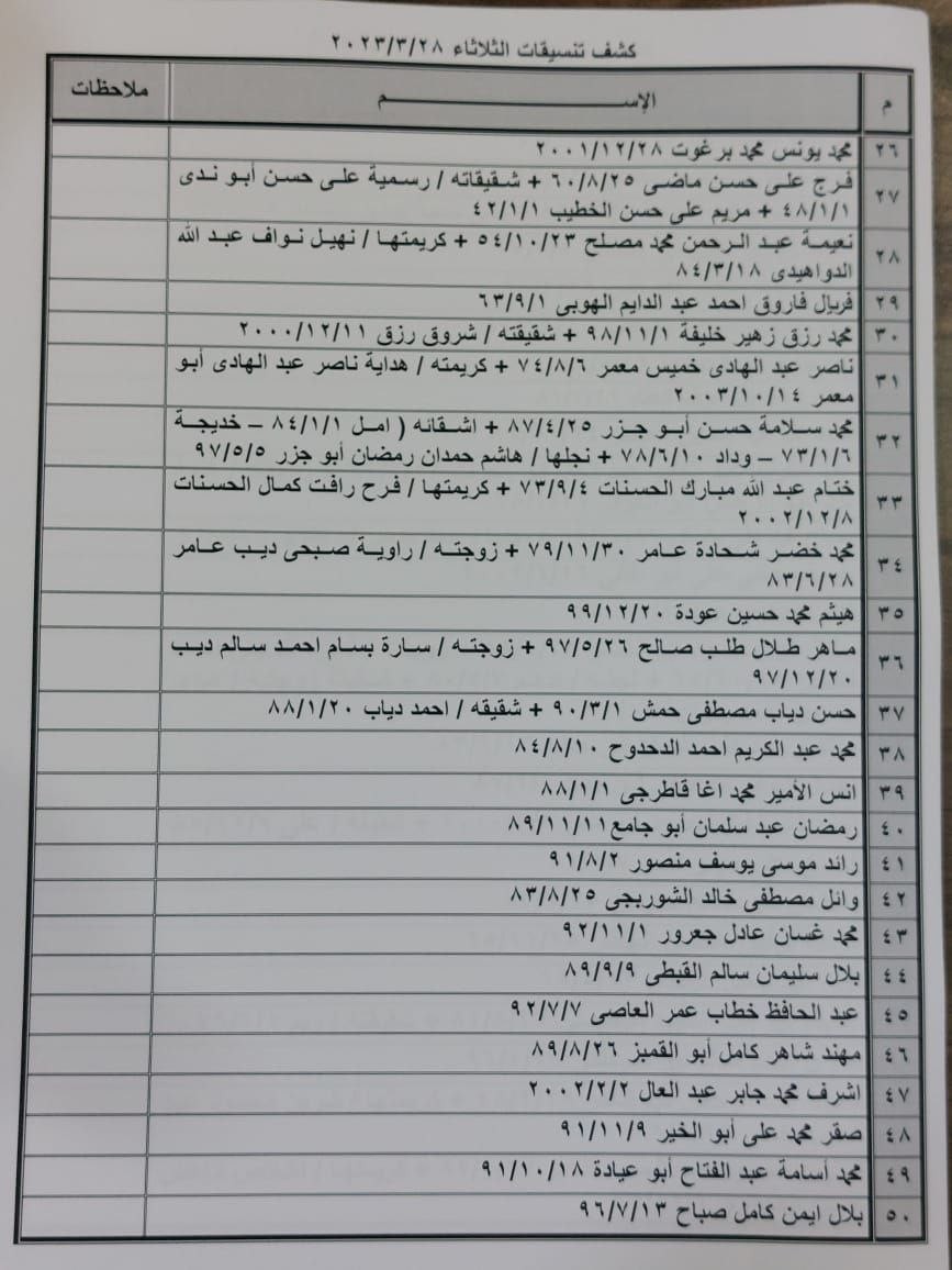 كشف التنسيقات المصرية للسفر عبر معبر رفح يوم الثلاثاء 28 مارس