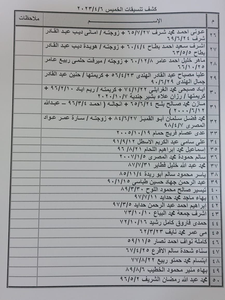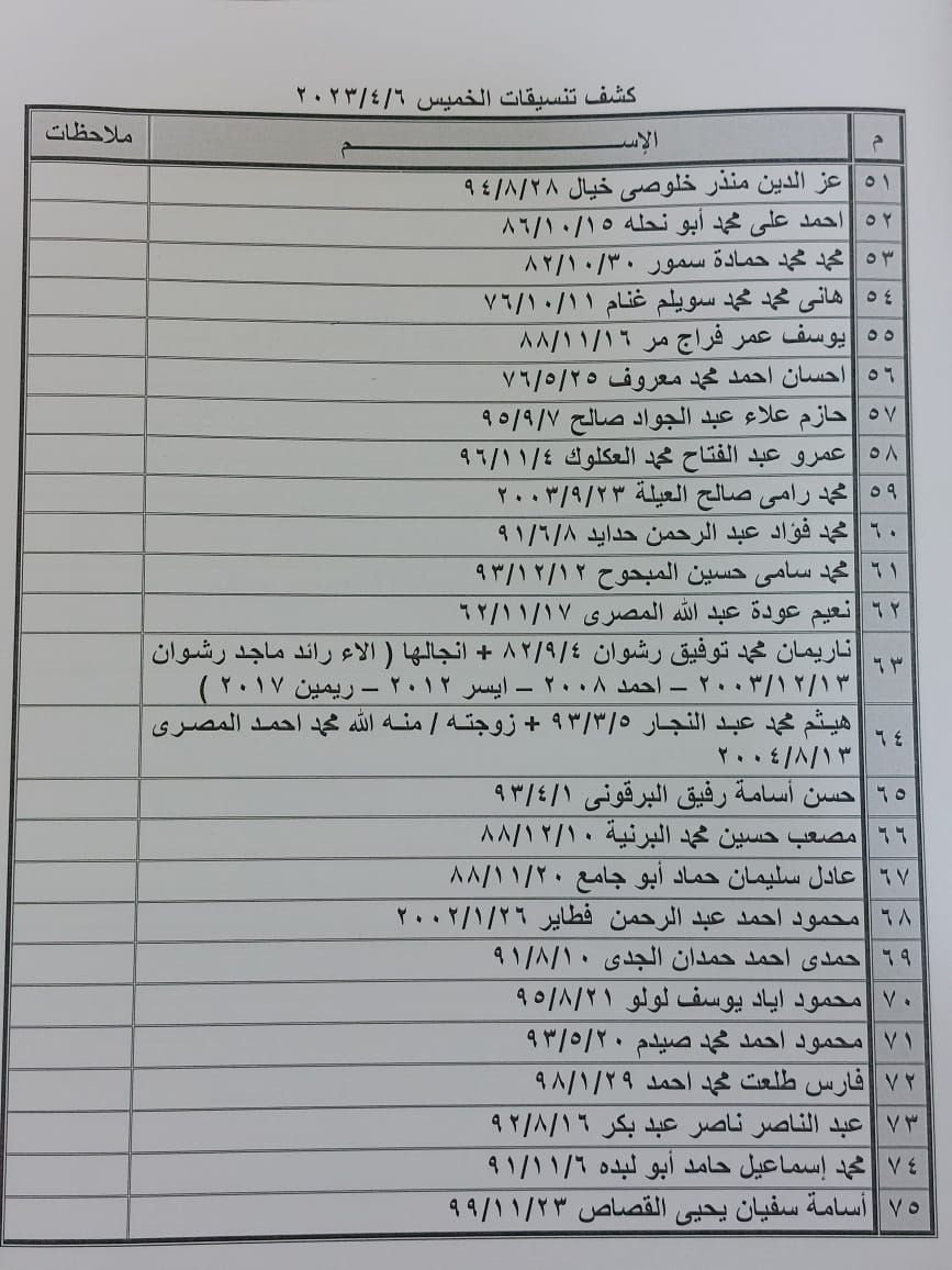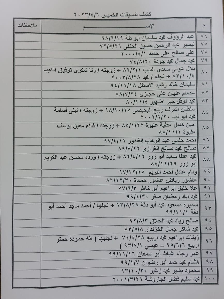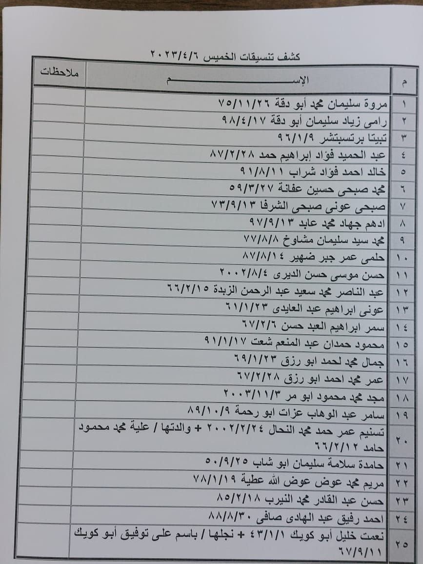 ودعت الداخلية بغزة الأسماء الواردة في كشف التنسيقات المصرية ليوم الأحد، التواجد الساعة السابعة صباحا في الصالة الخارجية لمعبر رفح البري لتسهيل سفرهم.