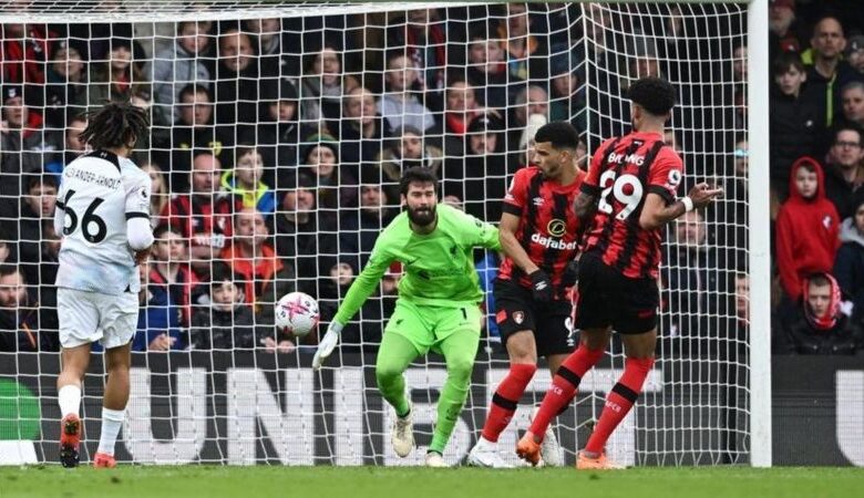 ليفربول يخسر من بورنموث بهدف و محمد صلاح يضيع ركلة جزاء