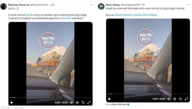وفي خضم التوترات، جرى مشاركة مقطع فيديو لقوافل ضخمة على الإنترنت، يزعم المستخدمون أثناء مشاركة الفيديو أن “مصادر إسرائيلية قالت إن الجيش الإسرائيلي كان يحرك صواريخه بعيدة المدى استعدادًا لضربات انتقامية محتملة من إيران”