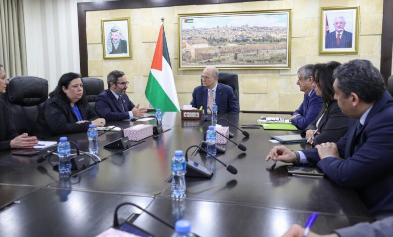 وشدد رئيس الوزراء، خلال اللقاء، الذي عُقد بمكتبه بمدينة رام الله ، بحضور وزير الأشغال العامة والإسكان عاهد بسيسو، ووزيرة التنمية الاجتماعية والإغاثة سماح حمد، على أن الأولوية في التعافي المبكر، إلى جانب استمرار جهود الإغاثة، هي العمل على إزالة الركام و فتح الطرق، واستعادة الخدمات الأساسية، وتوفير الطاقة المتجددة والإيواء المؤقت، وإصلاح المنازل المتضررة بشكل جزئي، واستعادة النشاط الاقتصادي وعودة عجلة الإنتاج.