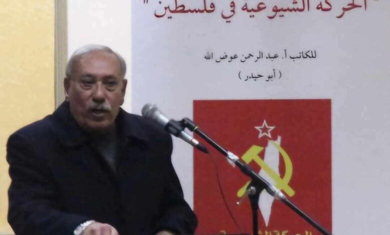 نعى الامين العام لجبهة النضال الشعبي الفلسطيني، أحمد مجدلاني، عضو المكتب السياسي السابق لحزب الشعب الفلسطيني، عضو المجلس المركزي السابق لمنظمة التحرير الفلسطينية المناضل التقدمي الوطني عبد الرحمن عوض “أبو حيدر”، الذي وافته المنيه اليوم الأربعاء بعد حياة حافلة بالنضال والدفاع عن قضية شعبنا .