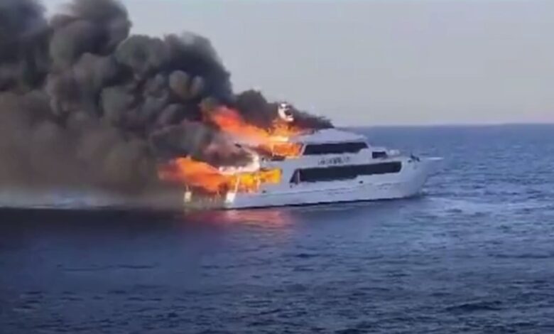 وكانت السلطات المصرية قد تمكنت من إنقاذ 14 سائحا في حريق مركب سياحي في البحر الأحمر.