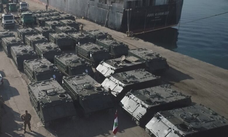 وتضمنت المساعدات، التي وصلت مرفأ بيروت، يوم الاثنين، (62) ناقلة جند، للمساهمة في تعزيز القدرات الدفاعية للجيش اللبناني وللمساهمة في تحقيق الأمن والاستقرار .