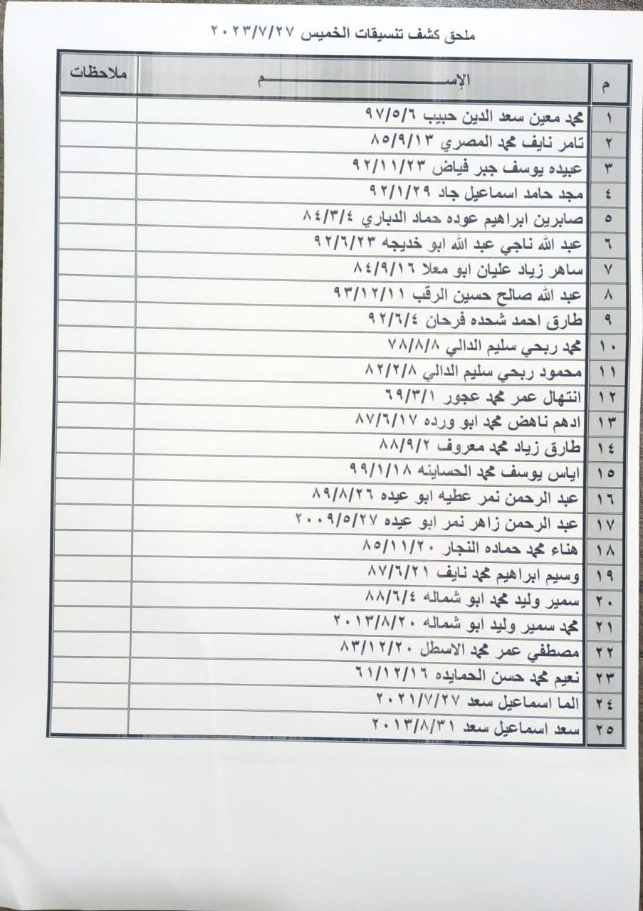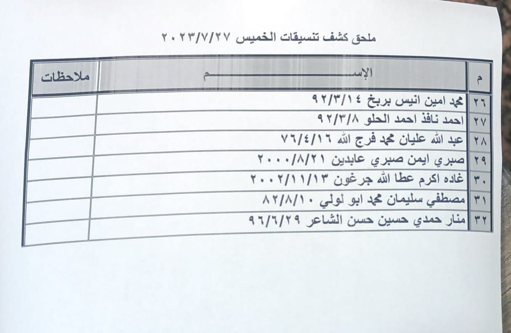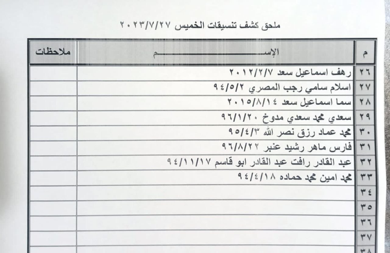 ملحق كشف التنسيقات المصرية للسفر عبر معبر رفح يوم غداً الخميس 27 يوليو