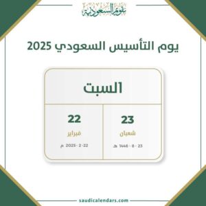 و في عام 2025، يصادف يوم التأسيس يوم السبت 22 فبراير.