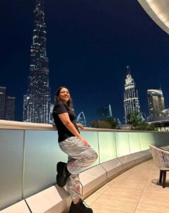 مي كساب بإطلالة كاجول من أمام برج خليفة في أحدث ظهور لها