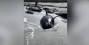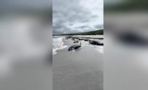 تداولت مواقع الإنترنت مقاطع فيديو تظهر جنوح أكثر من 70 حوتا من نوع الحيتان المجنحة الطويلة الزعانف إلى شواطئ إحدى الجزر قبالة الساحل الشمالي لاسكتلندا.