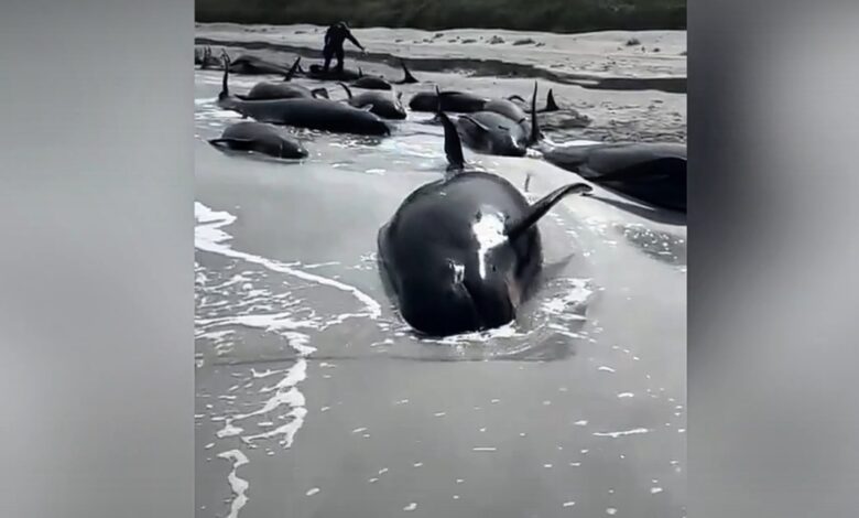 نفوق عشرات الحيتان على الساحل الشمالي لاسكتلندا
