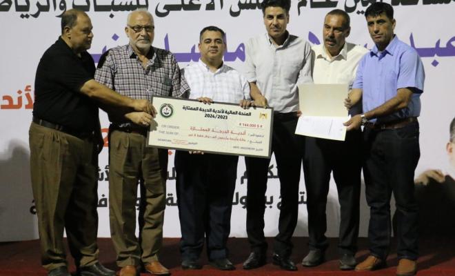 قدم عبد السلام هنية مساعد أمين عام المجلس الأعلى للشباب والرياضة، المرحلة الأولى من المنحة المالية للأندية لموسم 2024/2023، بقيمة 250.000 دولار، ضمن المنحة الإجمالية لهذا الموسم التي تبلغ 370.000 دولار للأندية والاتحادات الرياضية، وكرم لاعبي منتخب أشبال فلسطين المتوجين بكأس بطولة الصداقة الدولية في النرويج، في حفل كبير حضره الشخصيات الرياضية ورؤساء الأندية وممثلي الاتحادات الرياضية، مساء اليوم الأربعاء في استاد فلسطين الرياضي.