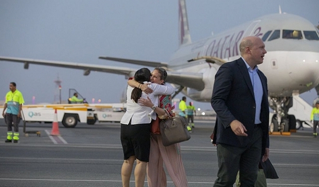 وبعد تأكيد عملية التحويل أقلعت طائرة قطرية تقل السجناء الأميركيين الخمسة، بالإضافة إلى اثنين من أقاربهم من طهران، وفي الوقت نفسه وصل اثنان من السجاء الإيرانيين الخمسة إلى الدوحة في طريق عودتهم إلى وطنهم. واختار الثلاثة الآخرون عدم العودة إلى إيران.