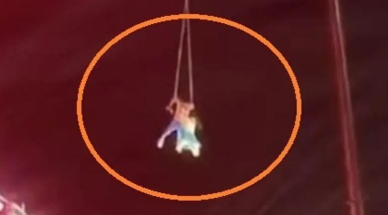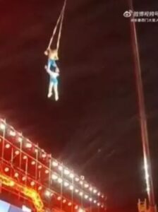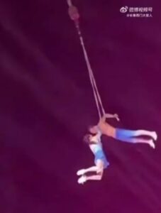وأظهرت لقطات فيديو، التقطت من الحاضرين الفنانة الصينية صن مومو – 37 سنة – وهي تسقط أمام عيني زوجها خلال عرض على شكل أرجوحة، حيث فشل شريكها في الإمساك بها بساقيه أثناء حركة استعراض خطيرة.