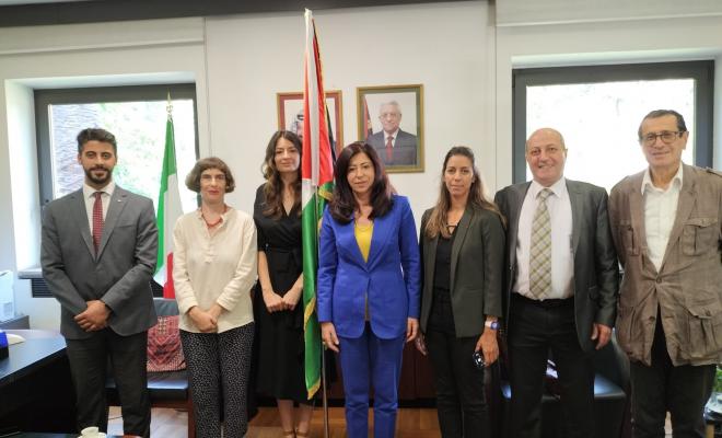 وفد من جمعية الصداقة الإيطالية العربية يزور سفيرة فلسطين في روما