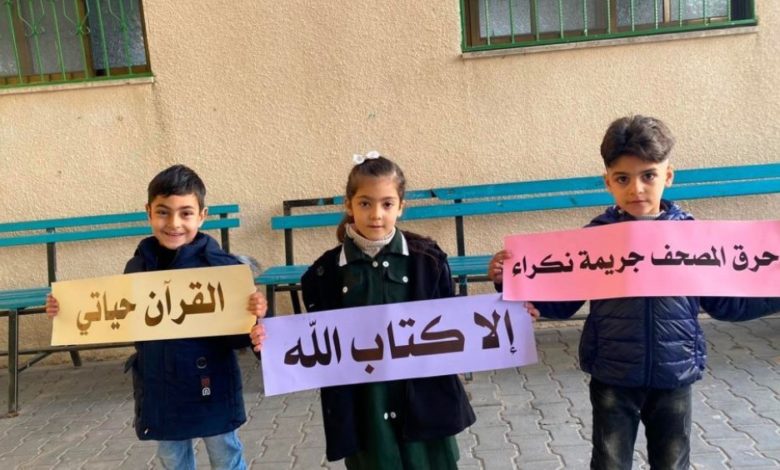 غزة: فعاليات مدرسية تنديدًا بجريمة حرق نسخة من القرآن الكريم