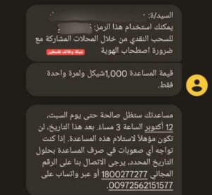 هام| مؤسسة الإغاثة الكاثوليكية بدأت بارسال رسائل لآلاف الأسر لاستلام مساعدة مالية بقيمة 1000 شيكل ولمرة واحدة فقط .