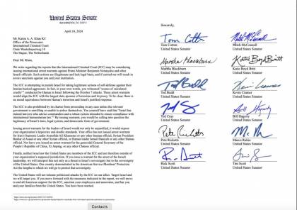 وأورد موقع “زيتيو” في خبر، الاثنين، فحوى رسالة تهديد أرسلها 12 عضوًا جمهوريًا في مجلس الشيوخ، بما في ذلك توم كوتون وماركو روبيو وتيد كروز، إلى المدعي العام للمحكمة الجنائية الدولية خان.