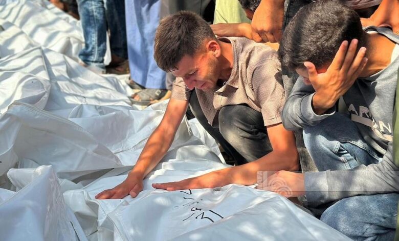 وأكدت مصادر طبية، استشهاد 5 مواطنين وإصابات جراء غارة للاحتلال الإسرائيلي على خيمة للنازحين في شارع الجلاء بمدينة غزة.