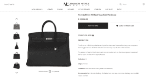 لقطة شاشة تظهر شكل وسعر حقيقة هيرميس بيركن