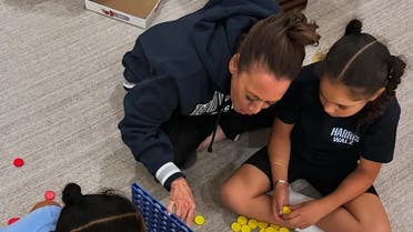 ويمكن رؤية المرشحة الرئاسية البالغة من العمر 60 عاما وهي ترتدي قميصا من جامعة هوارد أثناء لعبها في لعبة المدرسة القديمة مع أبناء أخواتها.