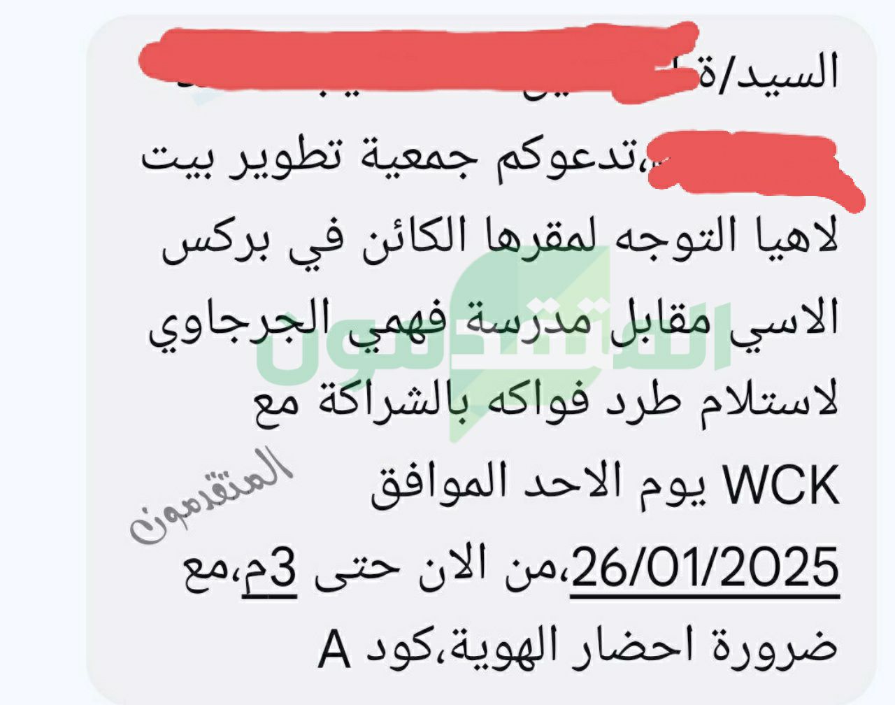 ضرورة إحضار بطاقة الهوية الشخصية عند التوجه لنقاط التوزيع.المساعدة متاحة فقط في اليوم والتاريخ المحددين في الرسالة التي يتلقاها المستفيد.