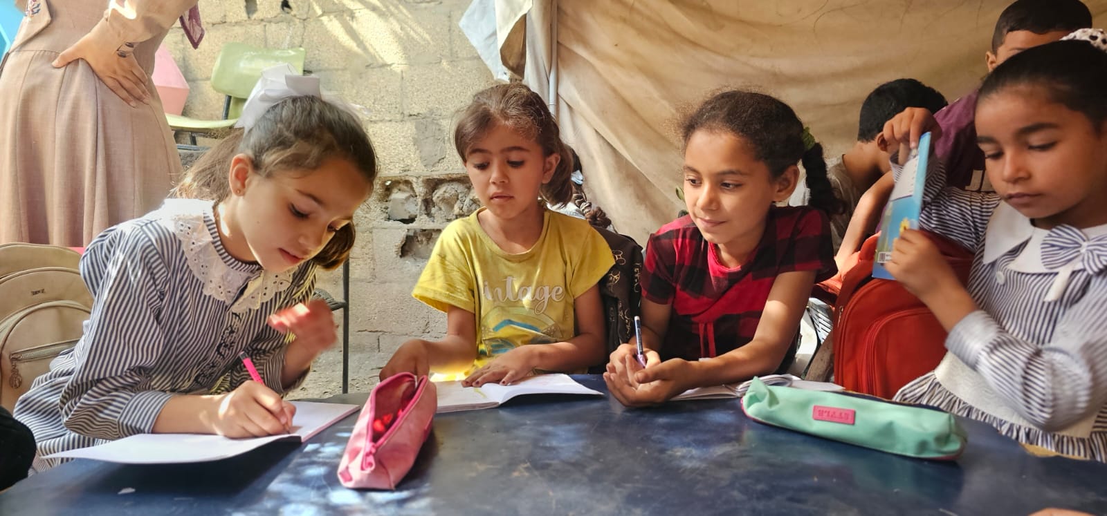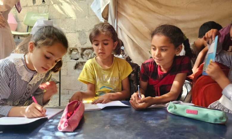 بالصور: في ظل الحرب… “همة نحو القمة” تُطلق العام الدراسي الجديد من خيمة في مخيم المغازي