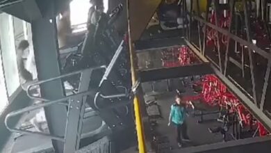 فيديو مرعب .. فتاة تعثرت فدفعها جهاز المشي من الطابق الثالث