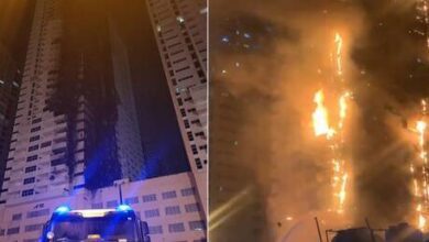 شاهد: اندلاع حريق ضخم في برج سكني بعجمان في الإمارات