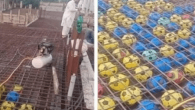 إليكم السر وراء وضع كرات بلاستيكية على سقف المنازل أثناء الصب ..فيديو