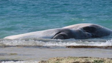 شاهد: البحر يلفظ حوتاً على شاطئ أسدود