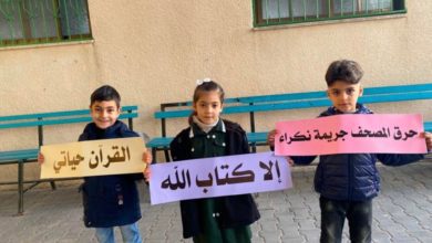 غزة: فعاليات مدرسية تنديدًا بجريمة حرق نسخة من القرآن الكريم