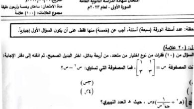 الامتحان النهائي لطلاب الثانوية العامة ” توجيهي ” في مادة الرياضيات للفرع العلمي لعام 2023